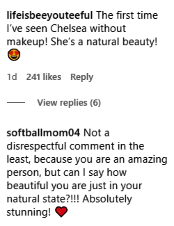 “Happy birthday, beautiful girls! We never see Chelsea without makeup! [heart eyes emoji] absolutely stunning,” read another comment.