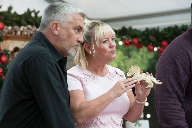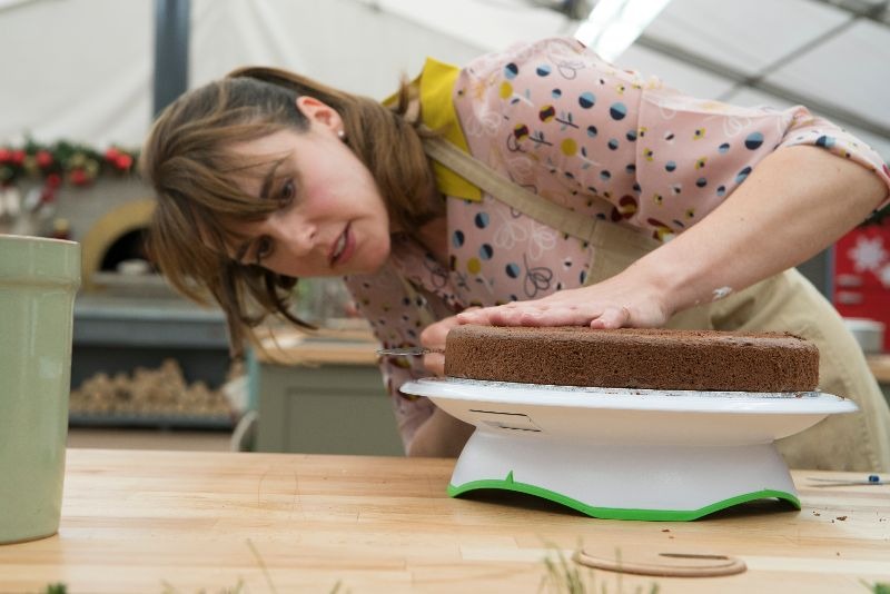 Amanda is making a “Tahoe forest cake,” (lest we forget she’s from Lake Tahoe) a take on a black forest cake, decorated with chocolate bark and honeycomb. Taking the opportunity to remind us she’s from Lake Tahoe, she says the lake near where she lives is as “blue as Paul Hollywood’s eyes,” and everyone is nauseous. Save some butter for the cakes, Amanda!