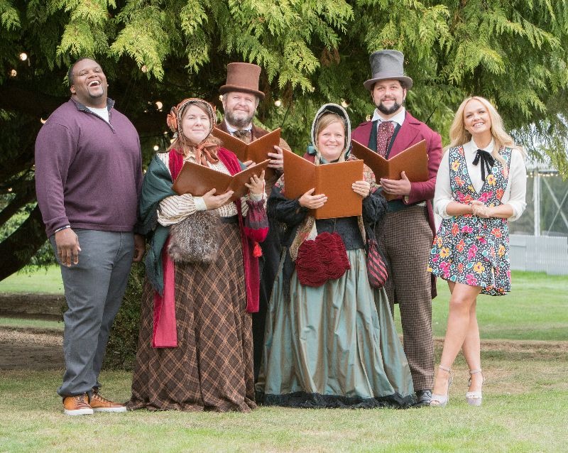 But before the winner is announced, the carolers are back — and they brought guests! It’s suddenly a party in the tent, with former contestants and the final three bakers’ families milling about. Good thing there’s plenty of cake!